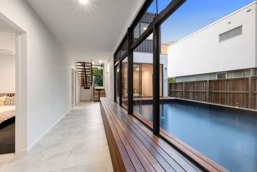 The large windows on each storey allow natural sunlight to flood the space and the French doors give way to the natural sea breeze of the coast. You can enjoy evening barbeques with those you love on the large outdoor balcony or cool off from the summer heat in the large pool this home has to offer.